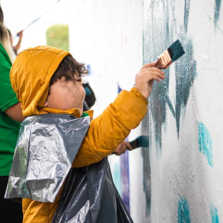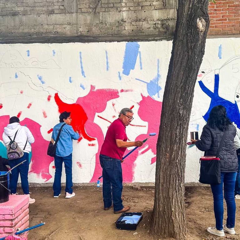 Pinta colectiva con participación de vecinos, voluntarios alcaldía y trabajadores de empresa.